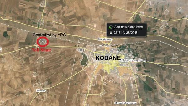La retirada d'IS ha estat notable i les forces d'YPG han perseguit els fonamentalistes arribant a derrotar-los a Tall Shair, un turó situat a l'est de Kobanê que IS va capturar el passat dia 3 d'octubre. Tall Shair és situat a quatre quilòmetres i mig de Kobanê. La desesperació d'IS per conquerir Kobanê és tal que ahir va llençar tres atacs suïcides contra les defenses de les YPG.